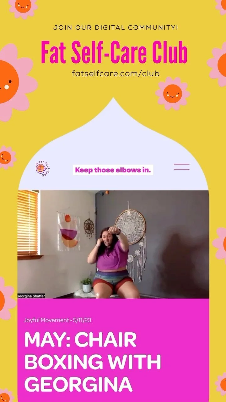 In 2017 I started working with a start up called Joyn (in partnership with Nike). I helped source all of the instructors, developed the strategy for how we as fat creators could share our classes, and created a library of my classes on the platform. I worked with Joyn to help create an authentic and joyful experience for the fat community until 2021. The platform was all about joyful movement, empowerment, and joy at any and every size. I love that I was able to advocate for accessibility in my work with Joyn, and able to bring insights from my lived experience as a super-fat person to help inform how we can meet the needs of the members of the site.